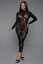Step into the Innocent Touch Lace Maxi Dress Bodystocking and experience luxury, comfort, and style. It's not just an undergarment, it's a fashion statement that celebrates the beauty of lace and the power of a well-crafted silhouette. The delicate sheer floral lace shows what lies beneath creating a sensual yet elegant look. Mock neck Long sleeves Bodycon bodice Thong and pasties not included Handwash only, wash separately. Do not bleach/tumble dry/iron/dry clean. Be Wicked box packaging 93% Polyamide 7% Elastane Made in Taiwan