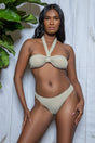 Victoria Two Piece Swimsuit Back tie halter Bandeau Back hook closure Low rise bikini bottom Hand wash in cold water. Dry in the shade. Do not bleach/iron/dry clean. Be Wicked Polybag Packaging