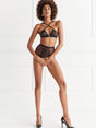 These are the trendiest knickers of the Vienna Collection. It is high-waisted and made with embroidery tulle, a delicate net fabric and satin elastic straps. It fits the woman’s   silhouette thanks to the golden rose slider and closing located in the back.