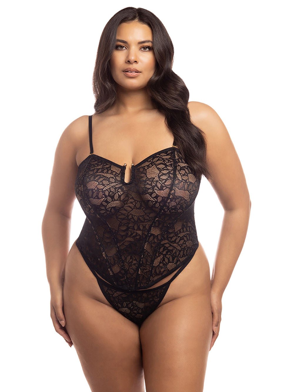 Curvy Kai Snake Lace Bustier Bra Set - Black / 1X/2X is backordered and will ship as soon as it is back in stock.
