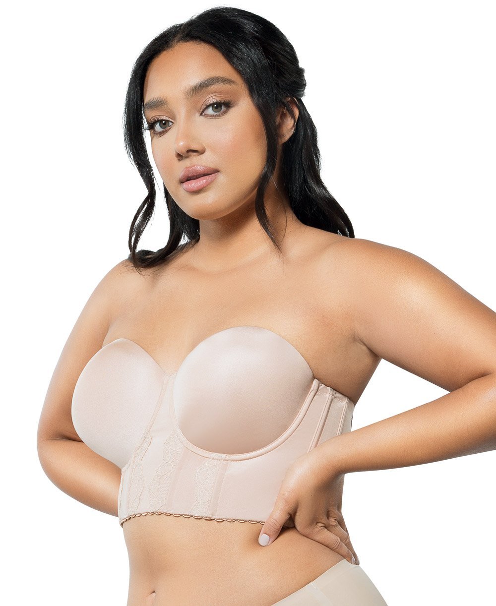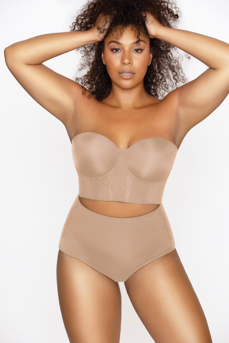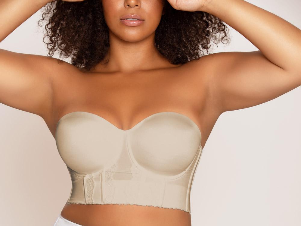 - The seamless style provide invisible look under clothing with silicon elastic at the neckline that keeps cups in place. The longline design sits on natural waistline for a sleek and modern look. Multiple hook and eye back closure helps smooth and adds the ultimate support, perfect for special occasions. Inclusive sizing is available.