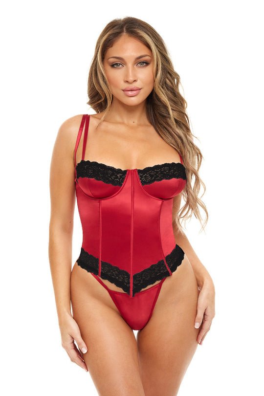 Tempest Bustier Bra Set - Red Dahlia/Black / S is backordered and will ship as soon as it is back in stock.