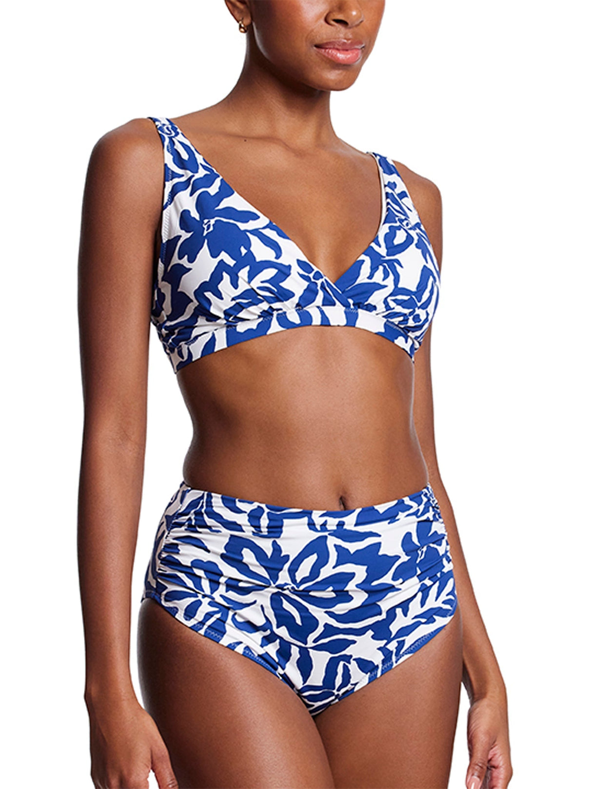 - This high waisted style featuring cheeky back coverage is sure to become your next favorite with flattering ruching across the front.
