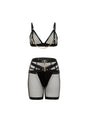 - FISHNET SOFT CUP BRA AND BIKER SHORT 3PC SET WITH G- STRING AND CHAIN DETAILS