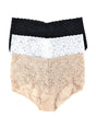 Pack of three retro-inspired high-rise panties with full back coverage. The extra-wide waistband feel like a hug!