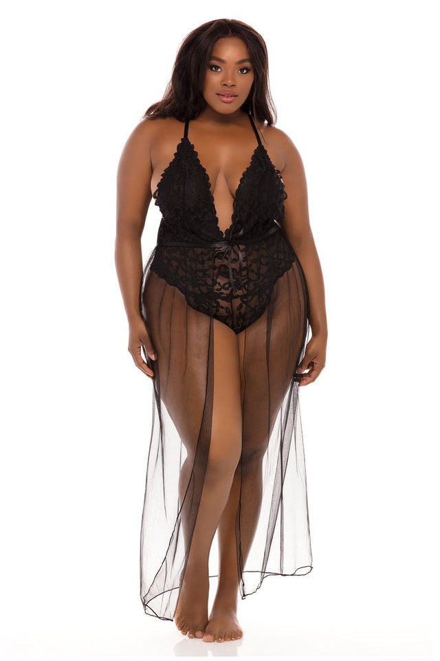 Curvy Jeana Sheer Skirt - Black / QU is backordered and will ship as soon as it is back in stock.