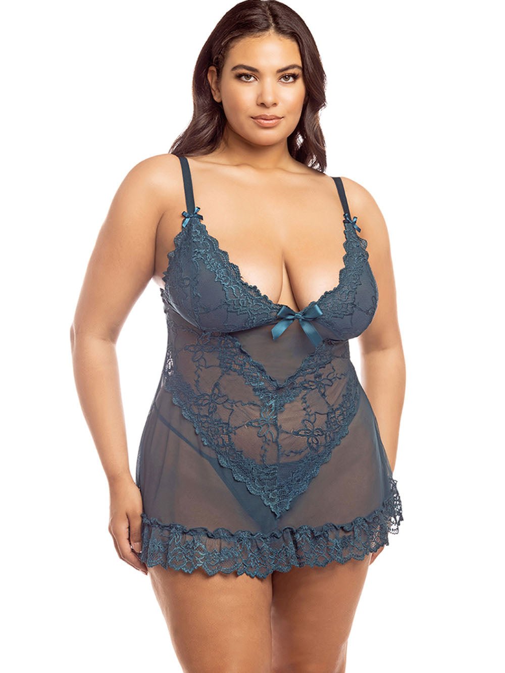 Drape your curves in the best-selling Valentine Lace Babydoll from OH LÀ LÀ CHÉRI. Designed with a seductive soft cup and crafted from floral lace and the softest mesh, this babydoll is designed to highlight your curves the right places. Features a flirtatiously bow at the center-front, this babydoll comes with a matching G-String.