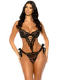 Unleash your sultry side with the Charlee Lace Teddy. This unlined underwire teddy features functional side ties, an open gusset, and an open back for maximum allure. With standard adjustable shoulder straps and a combination of galloon lace and fishnet body, this teddy is designed to make you feel confident and irresistible.