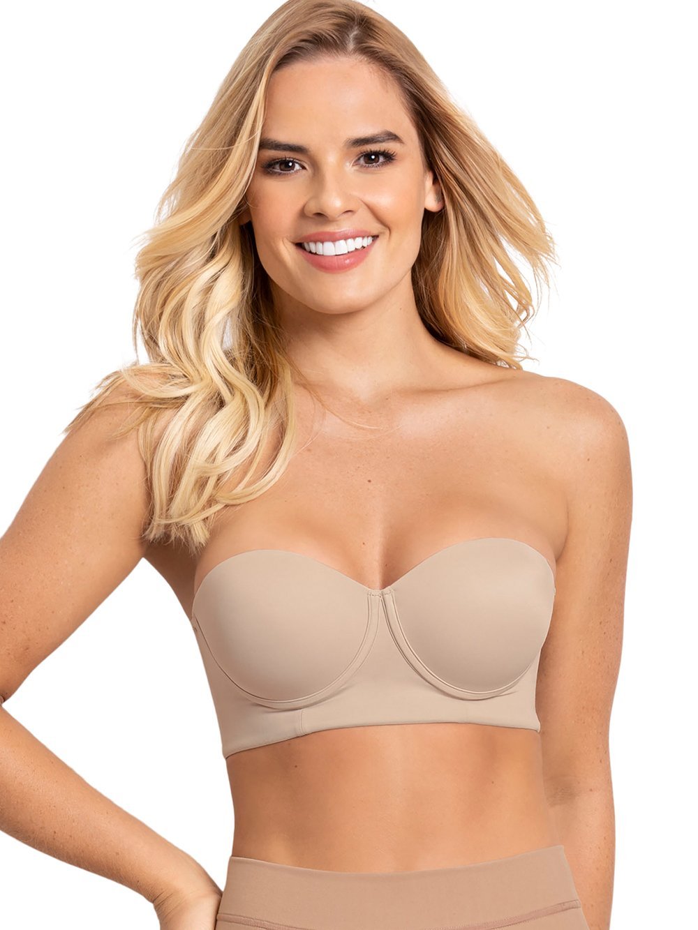 This balconet bra has contour cups featuring built-in secret straps to lift and center your bust. This design gives shaping and enhancement without bulky, traditional push-up padding. Its longline underbust band has our trademark PowerSlim® firm compression fabric, offering a smoothed-out look and stay-in-place support. Although this bra is specially designed for strapless wear, you can wear it however you want to. No matter what, you're going to look and feel awesome!