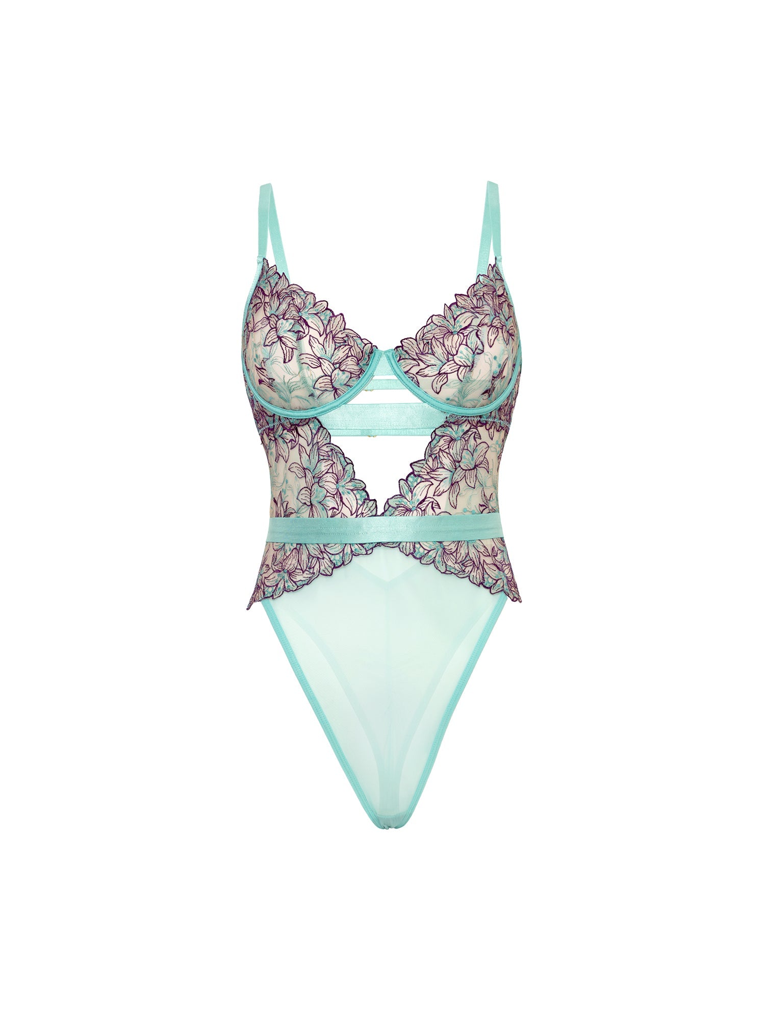 Unlined Underwire Embroidered Teddy With Keyhole Detail