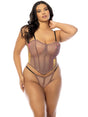 Elevate your lingerie game with our Curvy Nova Iridescent Bustier Bra Set. This set features a bustier with boning inserts for a flattering fit, accompanied by a matching G-string. The soft cups also have boning inserts for added support. The detachable, adjustable straps provide versatility, while the iridescent mesh adds a touch of playfulness.