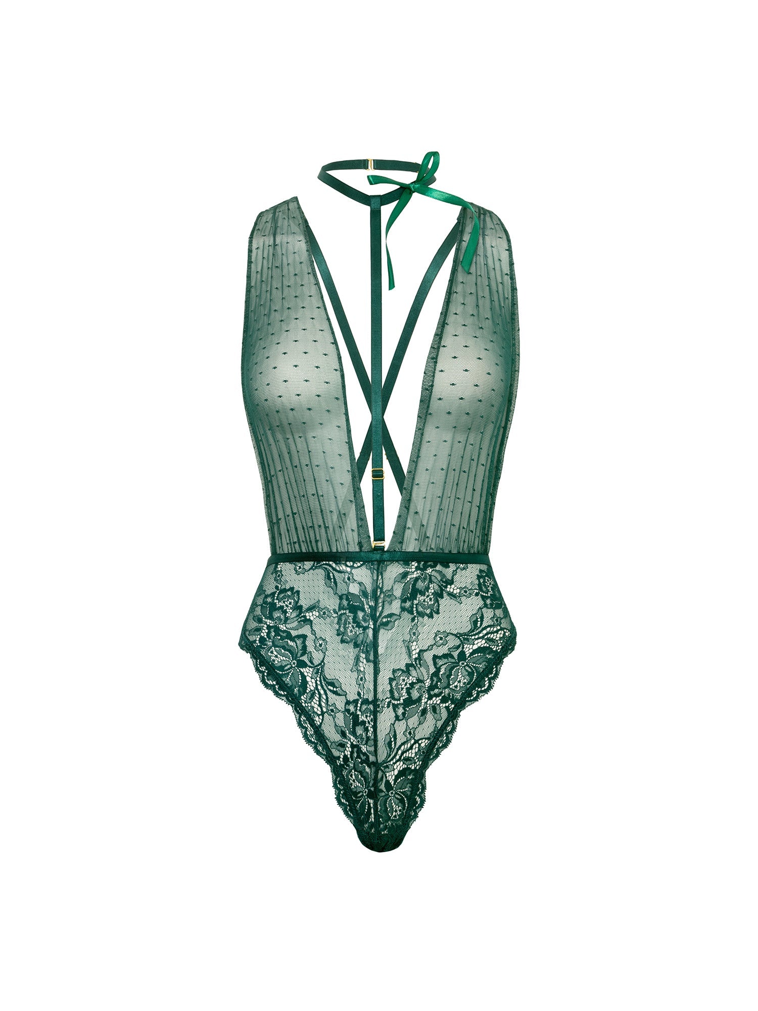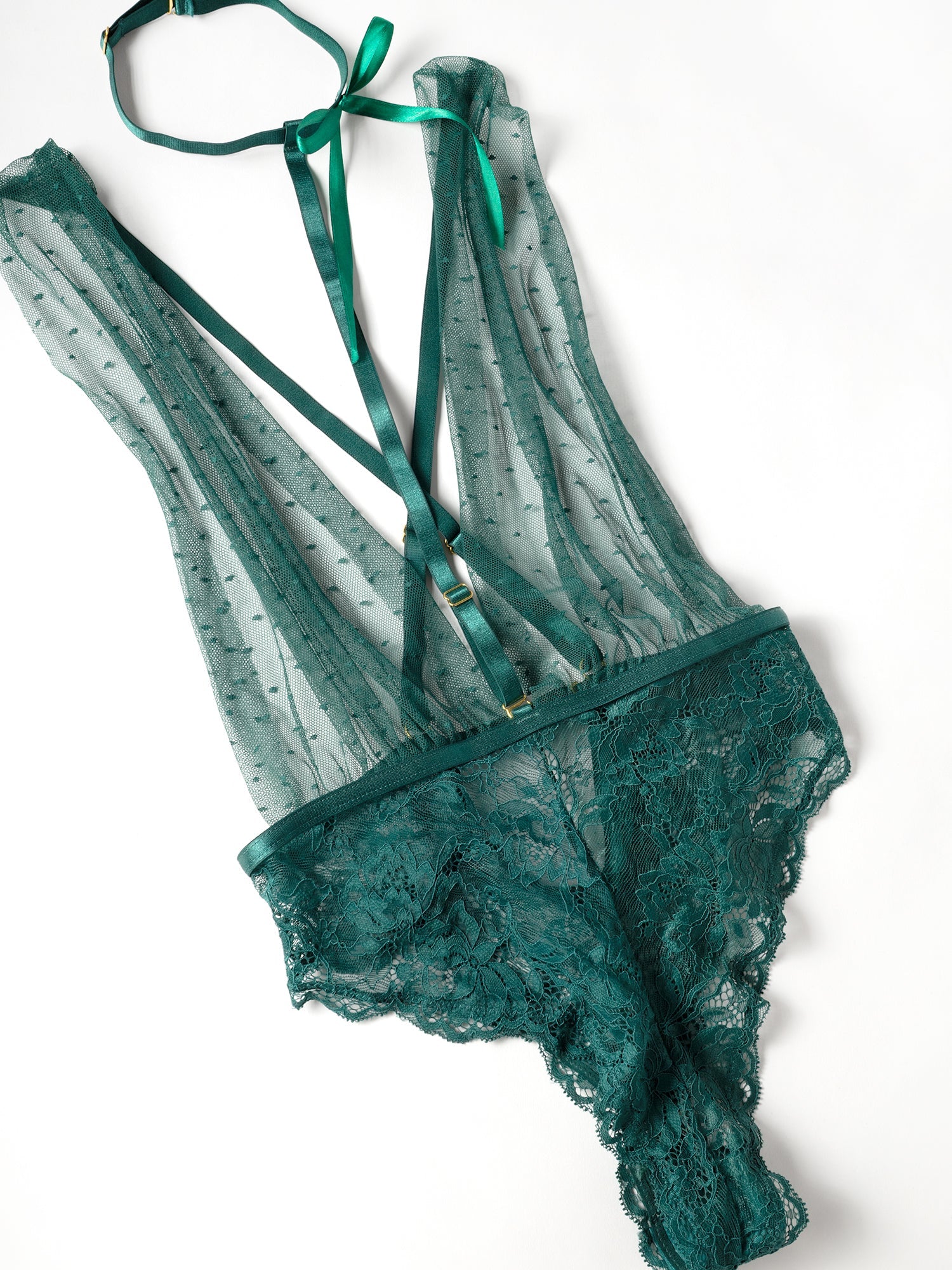 Soft Cup Lace And Mesh Teddy With Functional Tie Collar
