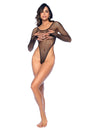 Make a statement in this long-sleeved fishnet bodysuit with a high-cut silhouette that accentuates your curves. Wear it for a night in the bedroom, or pair it with pasties or your favorite bra for a daring night out.