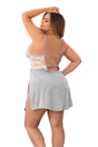 Sleep chemise in a soft heathered cotton with lace trims that gives it a relaxing charm. Features adjustable straps, open back, front high slits and a semi-loose silhouette.