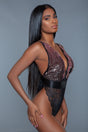 The sexy glam Estella bodysuit features a raspberry pink sequin design that gives this style something extra. Deep plunging neckline Adjustable spaghetti straps Back hooks and eye keyhole closure Delicate lace contrast Scalloped trim bottom High-cut thong bottom