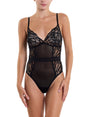 Dark, sculptural, and bold, our Glamorous Grunge collection embodies the spirit of punk with an elegant and feminine twist. The show-stopping Glamorous Grunge Bodysuit features striped elastics for a faux corset effect, dotted mesh tulle, floral lace, and scalloped trims and can be equally sexy on its own for a night in or paired with jeans for a night out.