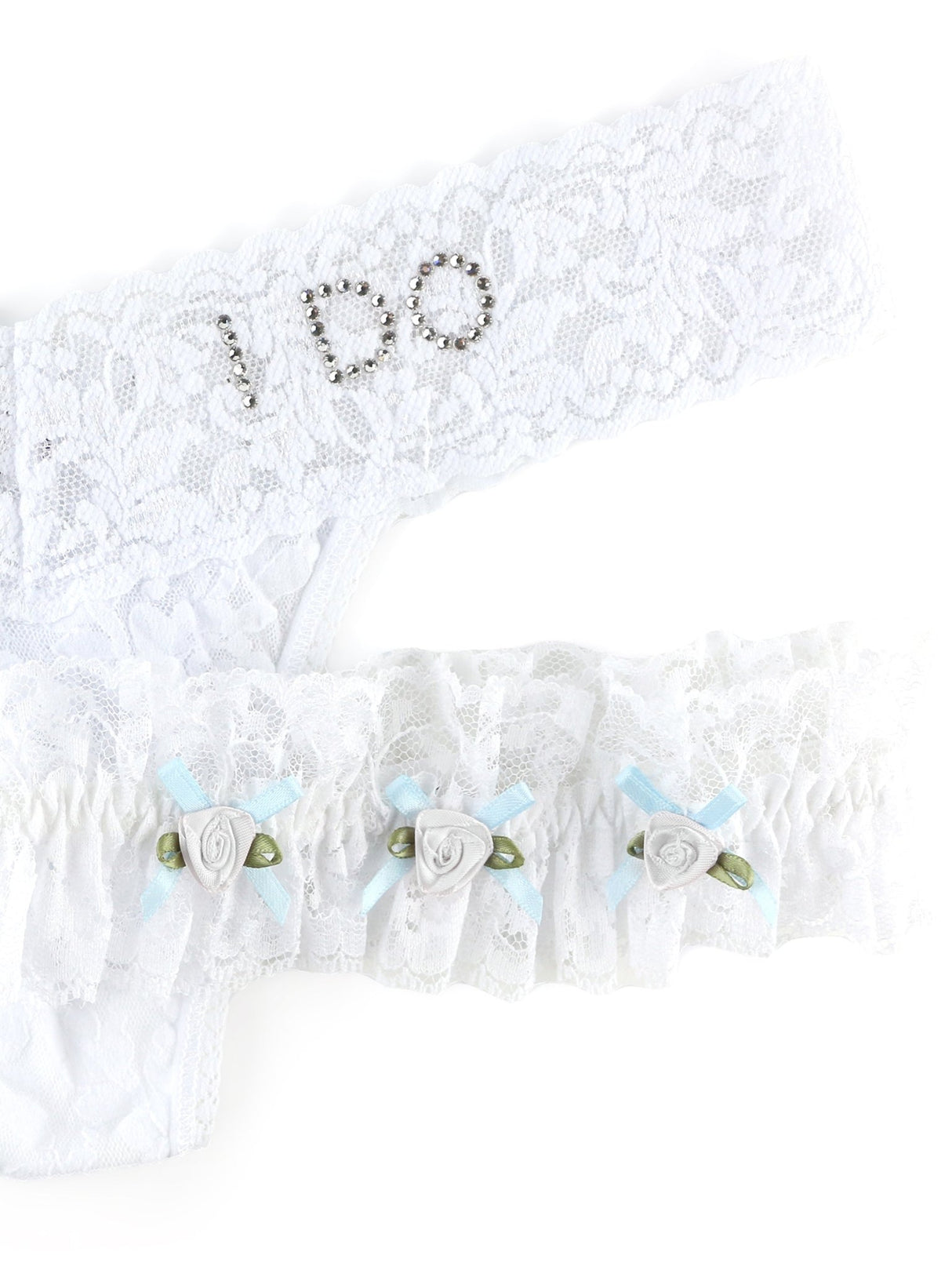 I Do Low Rise Thong & Garter Box Set - White/Powder Blue / OS ist auf Lager und wird versandt, sobald es wieder verfügbar ist