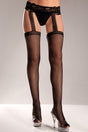 Seductive Here To Stay Thigh Highs stocking is a fashion-forward staple piece. Great to pair with your favorite lingerie. Attached floral lace belt Attached garter lace straps Floral thigh band Fishnet from toe to thigh Follow care instructions Be Wicked box packaging, dimensions (in): 10x7x1