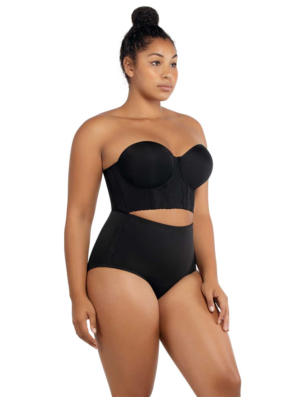 Un escote balconette muestra las tazas de tres partes con underwire en malla del modelo de diamante y microfibra. Las correas ajustables hacen fácil personalizar el adecuado. Una amplia goma elástica de la microfibra y las alas de la red de poder proporcionan el apoyo adicional.