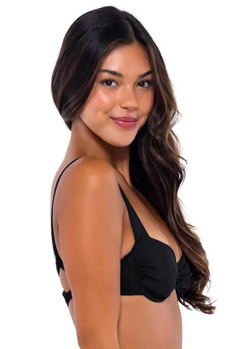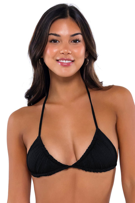$66.00Precio unitario /AgotadoPoca disponibilidad (5 unidades)B Swim Black Baja Rib Bermuda Triangle Bikini Top