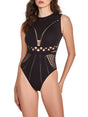 Seamless High Neck Teddy with allover geometric cutouts. This daring piece offers a sleek and alluring silhouette, perfect for making a bold statement and igniting passion in any intimate moment.