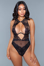 The sensual and confident Divina bodysuit comes with a contrast of delicate lace and mesh. Flattering front cut-out design and strappy back detail. High neckline Front wiring Unlined Back hook and eye closure Open back with a strappy design Scalloped trim lace High-cut cheeky bottom Handwash cold, do not wring or twist. Line dry, do not iron/dry clean. Polybag packaging, dimensions (in): 10x7x1
