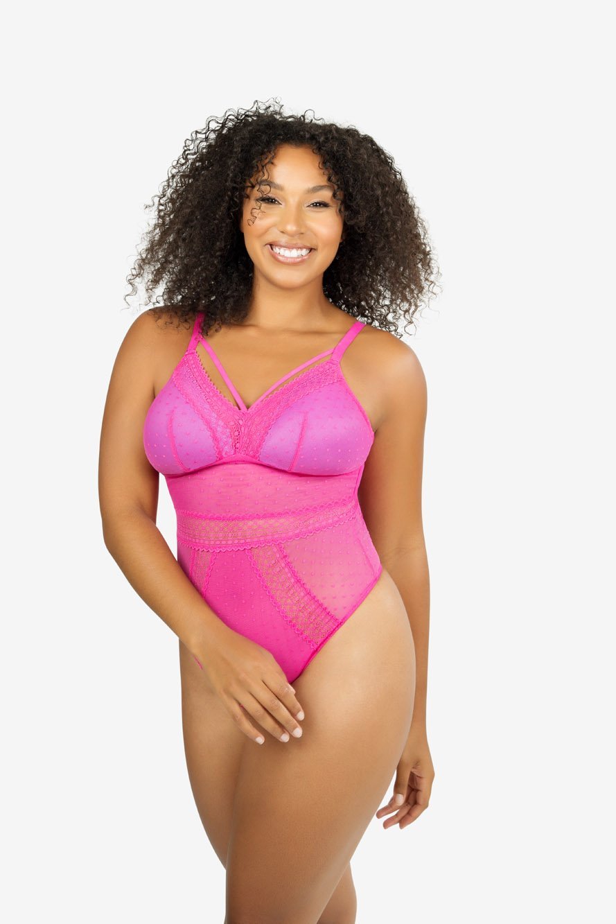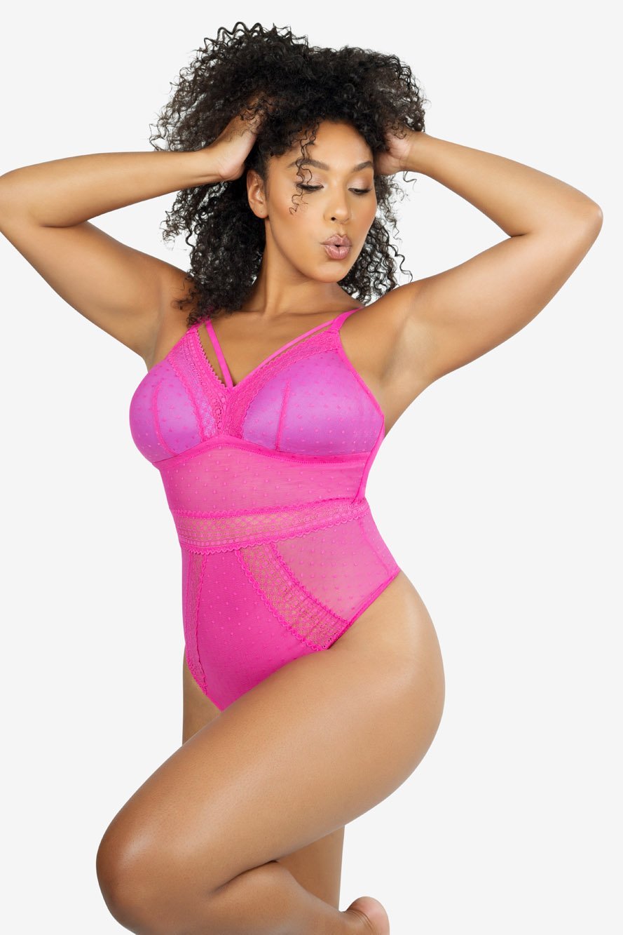 Una scollatura a balconcino mette in mostra le coppe in tre parti con ferretto in maglia a rombi e microfibra. Le spalline regolabili semplificano la personalizzazione della vestibilità. Un'ampia fascia elastica in microfibra e le ali in rete offrono ulteriore supporto.