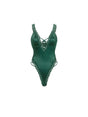 - STRETCH SATIN TEDDY WITH LACE TRIM AND FAUX LACE UP DETAIL