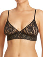 Our delicate signature lace bralette has unlined triangle cups and center bow.