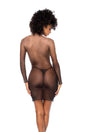 Long-sleeved dress in a stretch mesh with an ombre print in neutral tones. Includes matching thong.