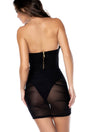 A sexy take on a classic little black dress. Strapless design in stretch mesh with built-in bodysuit and back zipper closure. Removable straps.